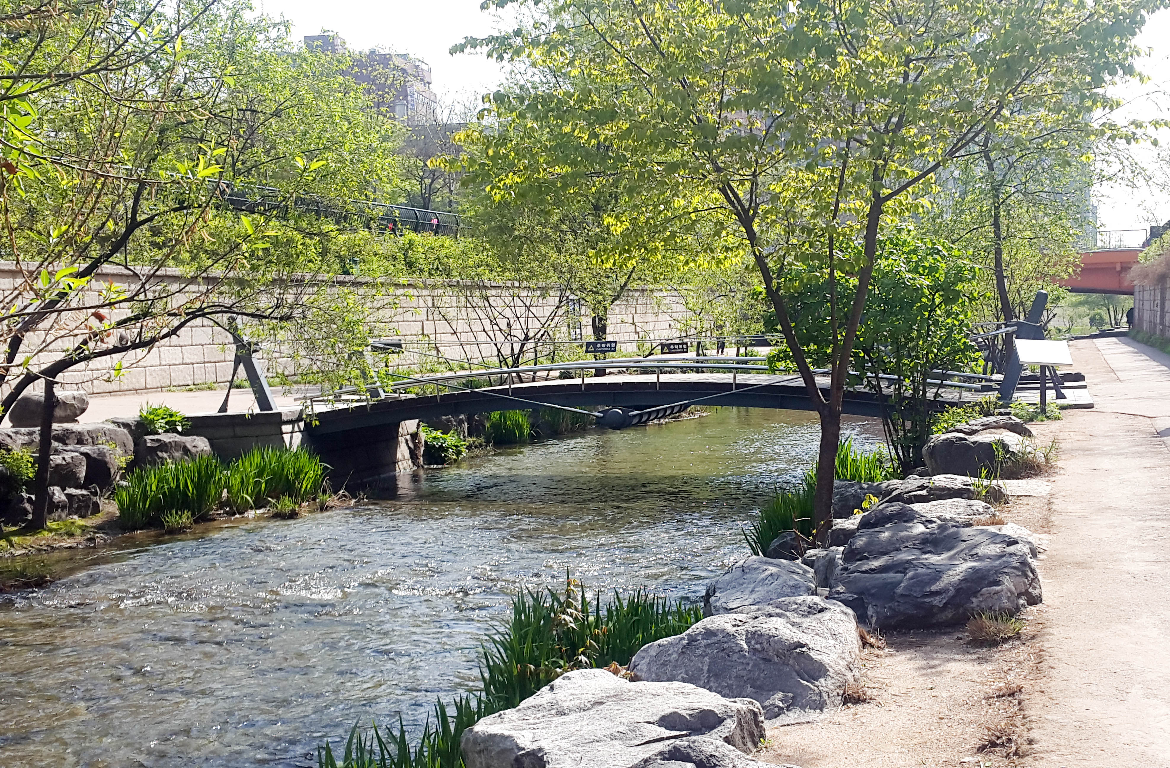 Cheonggyecheon Stream is one of the most popular tourist spots in Seoul. It is an 11 Km stream with 22 bridges!