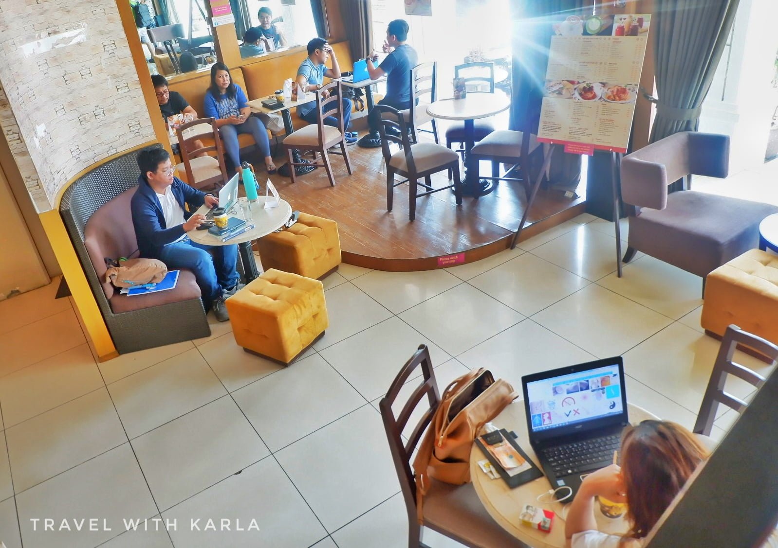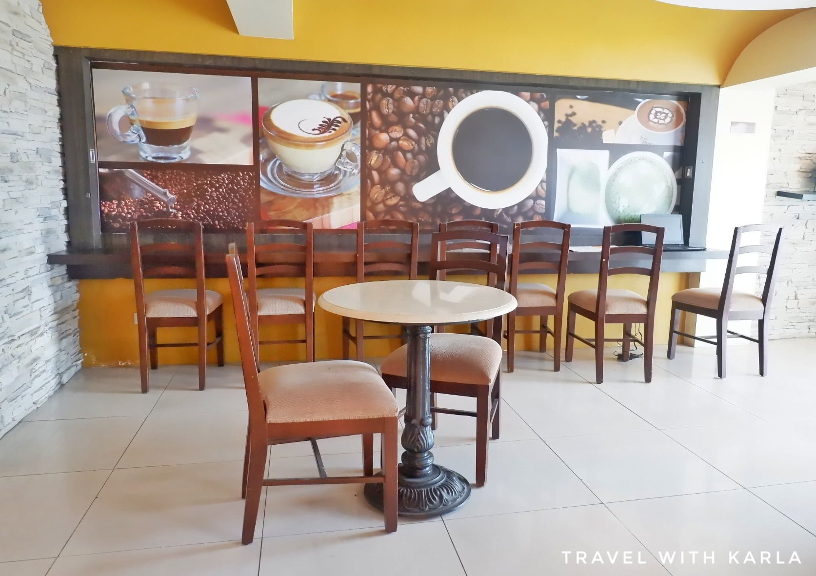 This looks like a very neat coffee shop, or as stated maybe even a coffee hotel or boutique. I like the yellow upbeat look including the furniture. If you know what you want to order the advance order will definitely help reduce the time ordering and waiting on arrival.